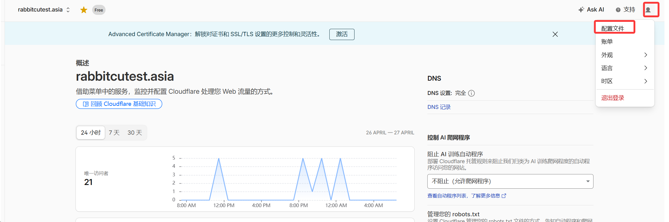 我们需要有一个域名在cloudflare下