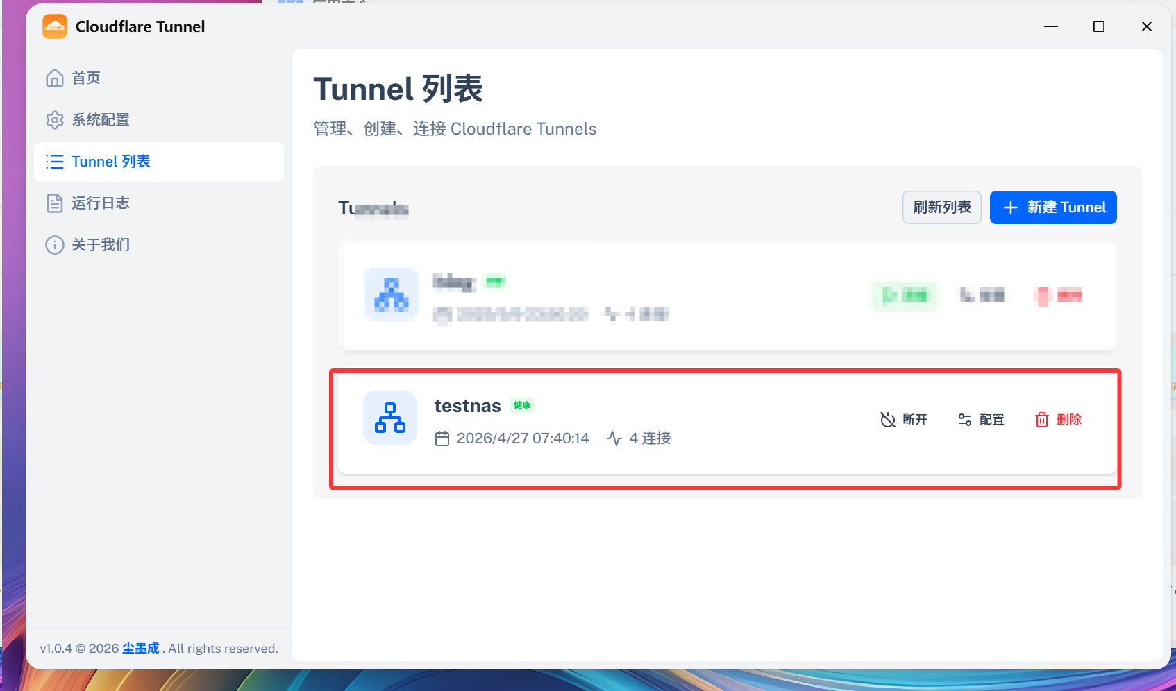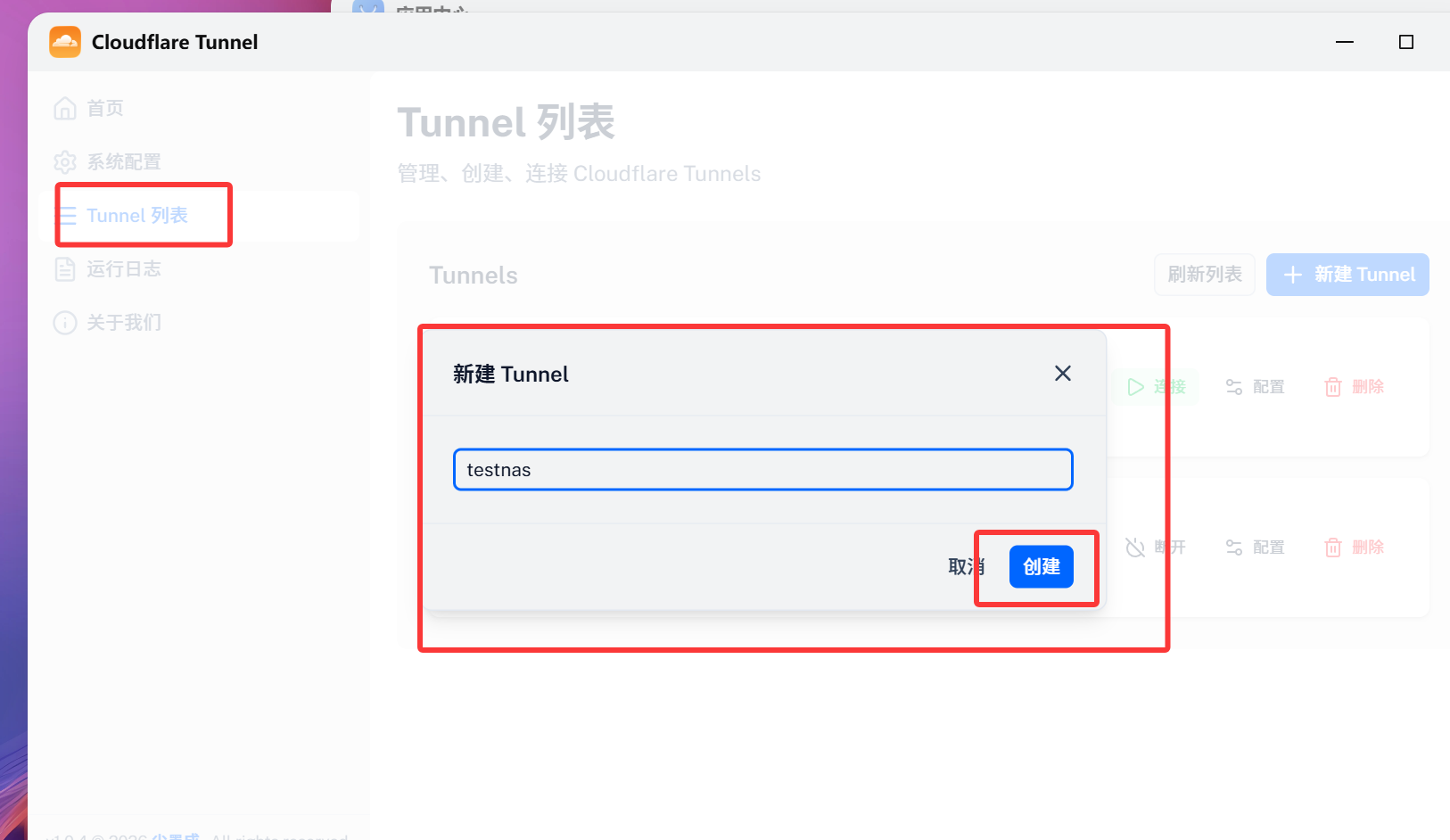 然后打开Cloudflare Tunnel——点击Tunnel——新建Tunnel——随便命名一下