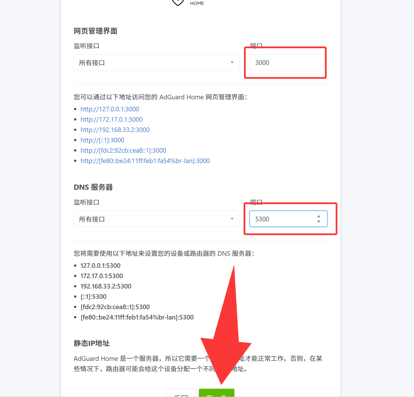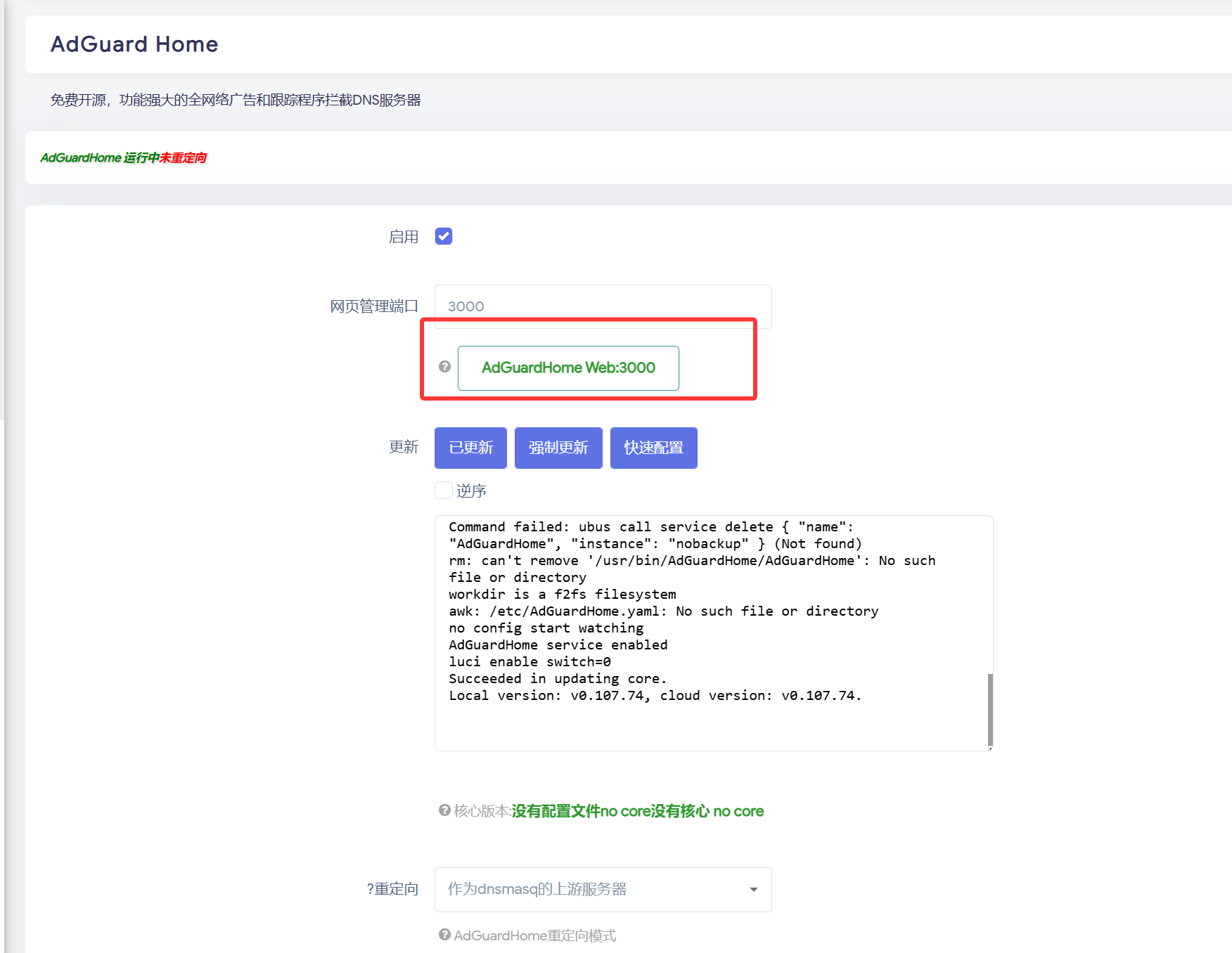 然后点击AdGuardHome Web:3000 会打开一个网页