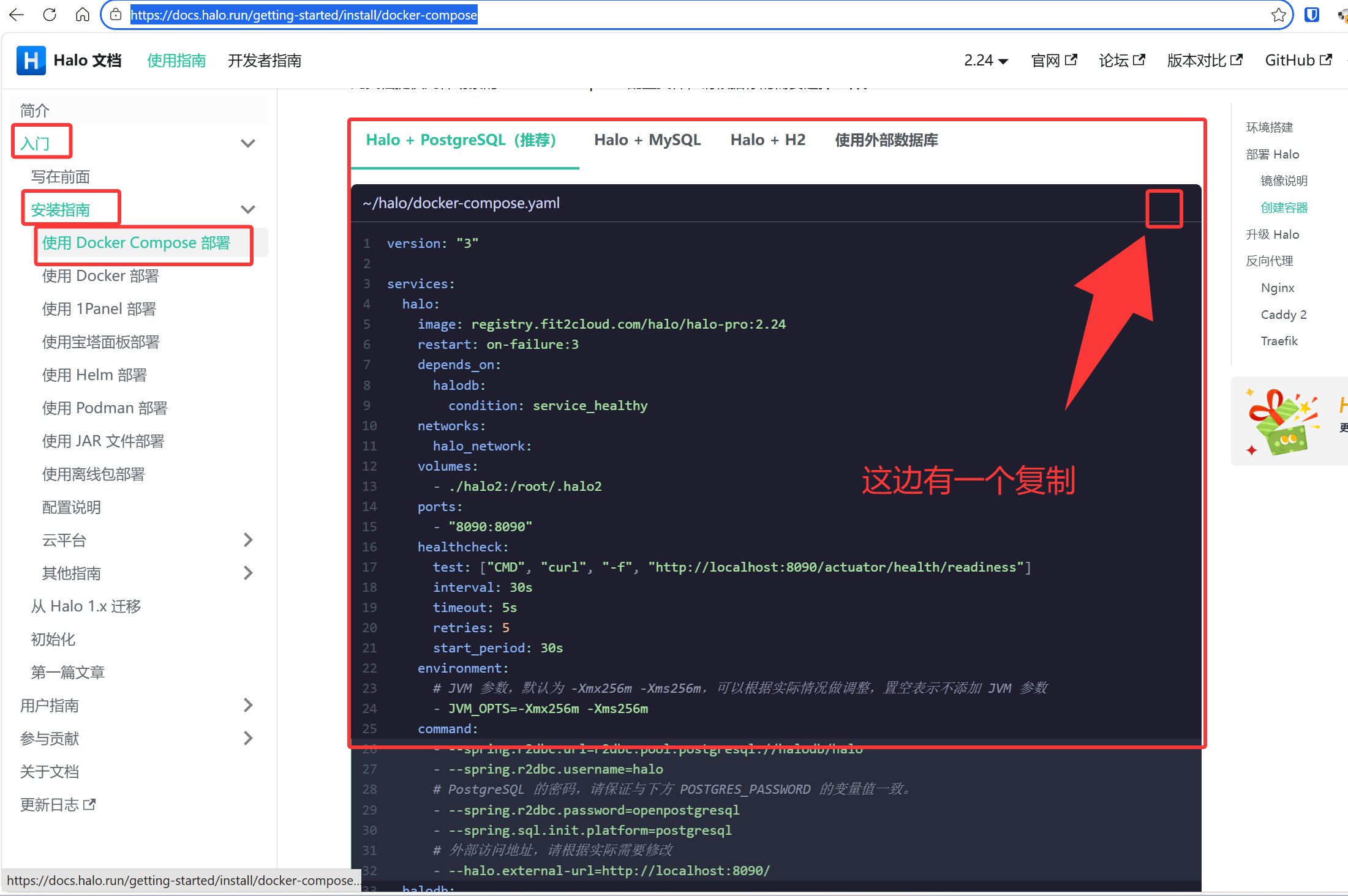 Halo的官方文档:https://docs.halo.run/getting-started/install/docker-compose