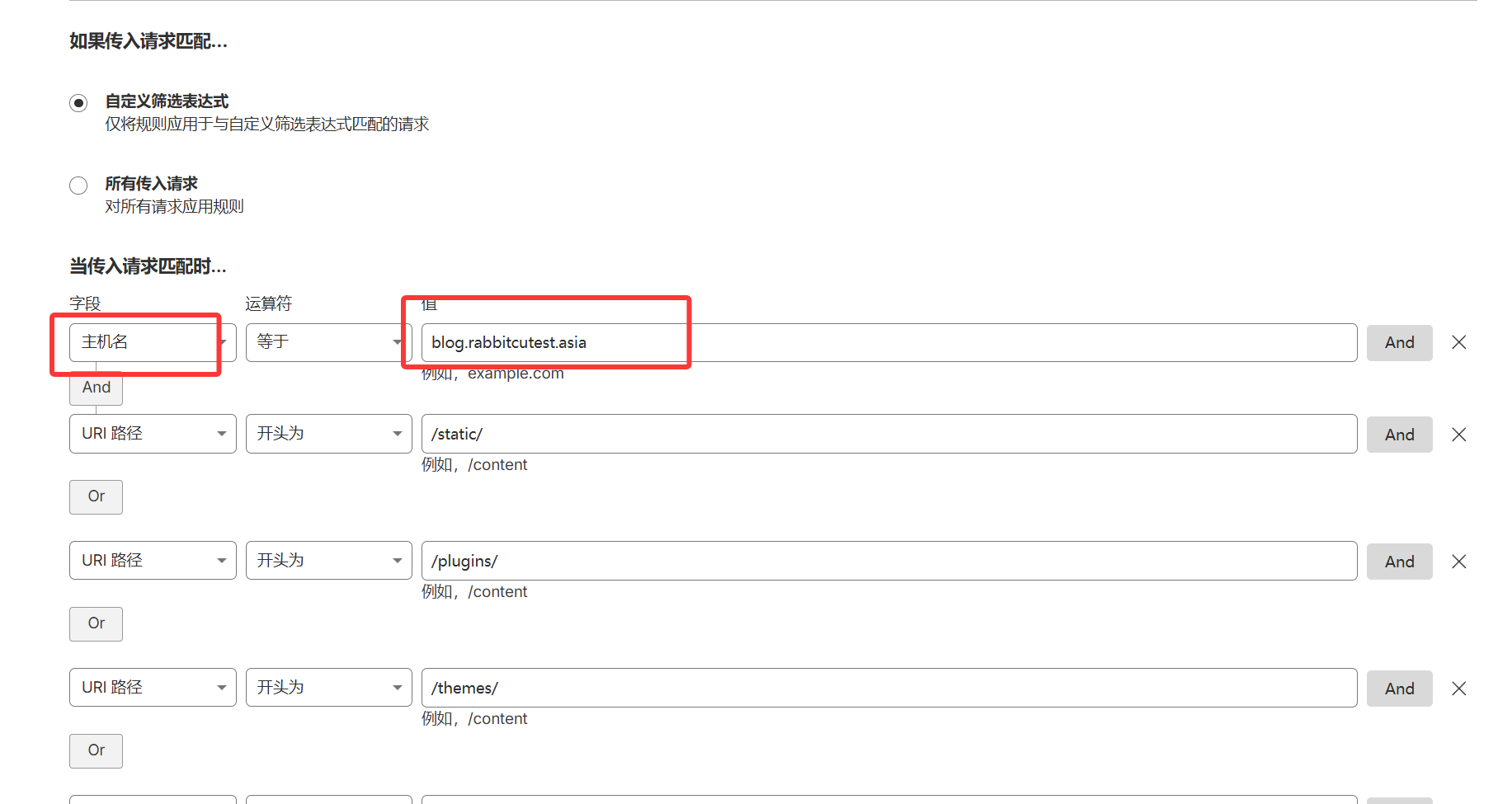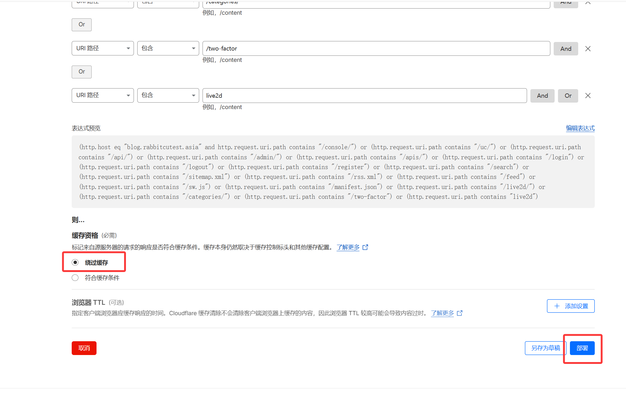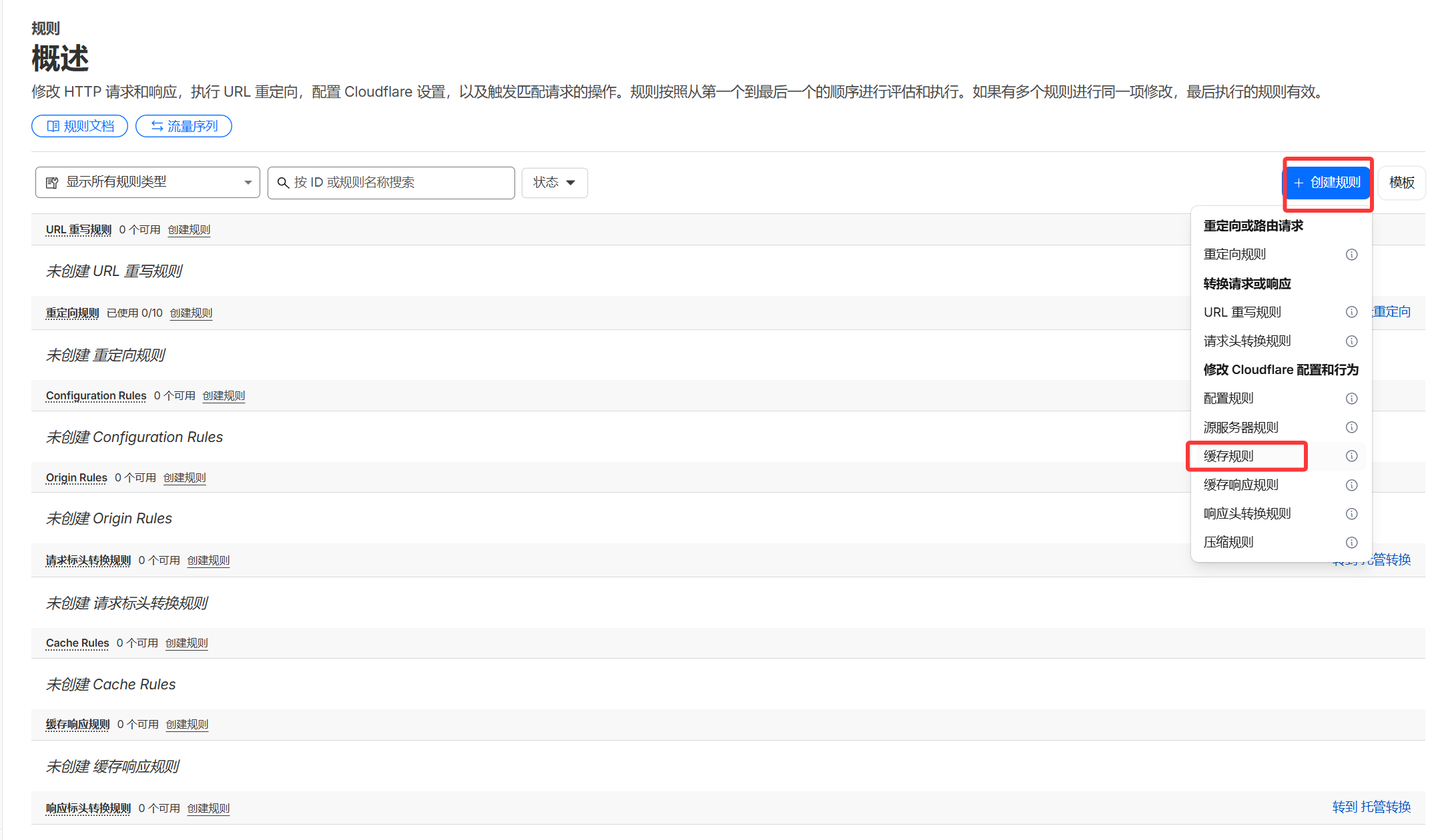 然后再次点击创建缓存规则 如下图填写名称,表达式生成器,将下边内容复制粘贴进去